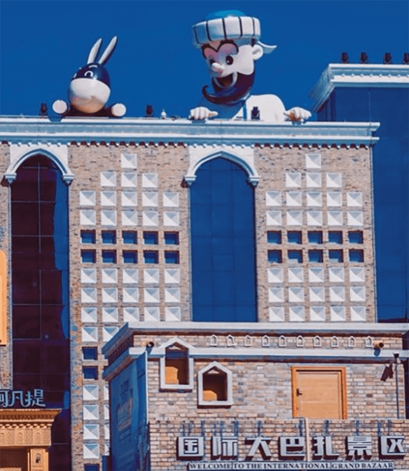 巴扎是維吾爾語,意為集市、農貿市場,它遍布新疆城鄉。新疆國際大巴扎于2004年入選烏魯木齊市“十佳建筑”,具有濃郁的伊斯蘭建筑風格,在涵蓋了建筑的功能性和時代感的基礎上,重現了古絲綢之路的繁華,集中體現了濃郁西域民族特色和地域文化,是“新疆之窗”、“中亞之窗”和“世界之窗”。