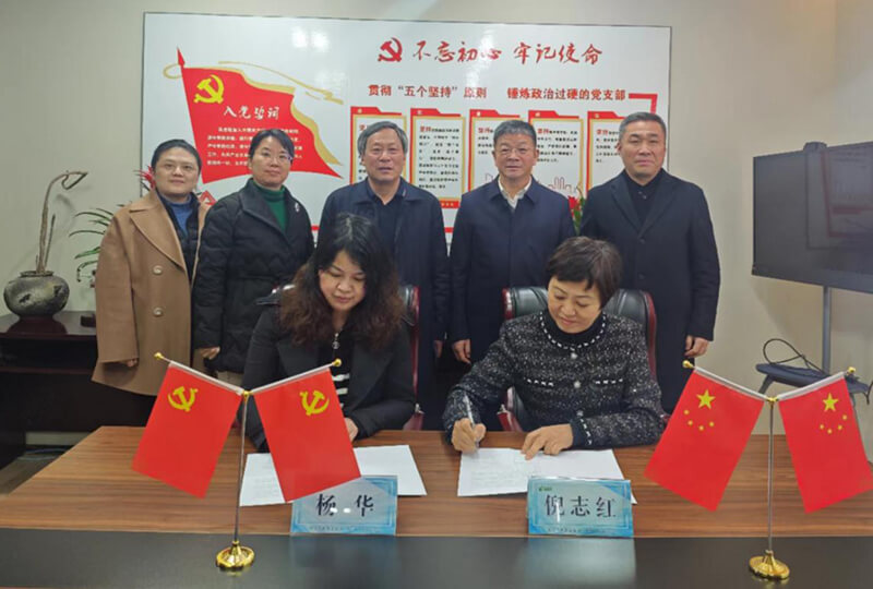 ↑商貿(mào)學(xué)院倪志紅副書記和集團(tuán)黨總支楊華書記簽署“蘇商紅盟”結(jié)對(duì)共建協(xié)議