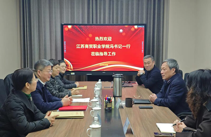 2024年1月8日下午,江蘇商貿(mào)職業(yè)學(xué)院黨委書記馮志明先生一行四人專程來(lái)到蘇商集團(tuán)本部指導(dǎo)交流工作,集團(tuán)董事長(zhǎng)陳家俊先生熱情接待了馮書記一行。