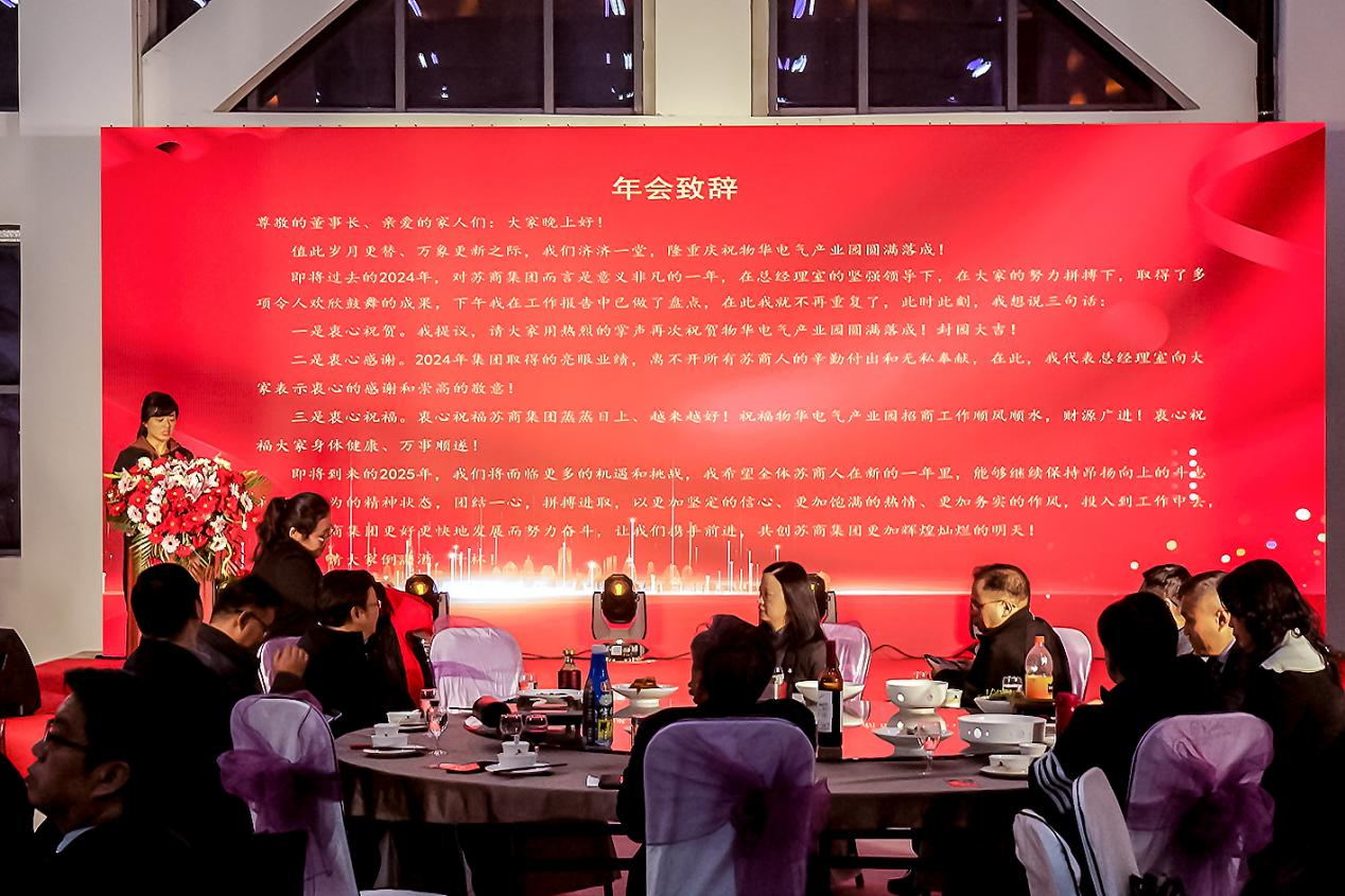 2024年12月31日,南京蘇商集團(tuán)隆重舉行“淵渟澤匯 囊橐充盈”物華電氣產(chǎn)業(yè)園圓滿落成慶祝活動(dòng),集團(tuán)本部全體員工和裝備制造事業(yè)部、商業(yè)管理事業(yè)部高管及員工代表150余人參加活動(dòng)。慶祝活動(dòng)從下午14:00開始,一直延續(xù)到晚上20:30,熱烈、喜慶、溫馨、和諧。