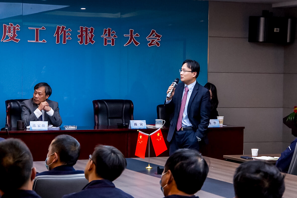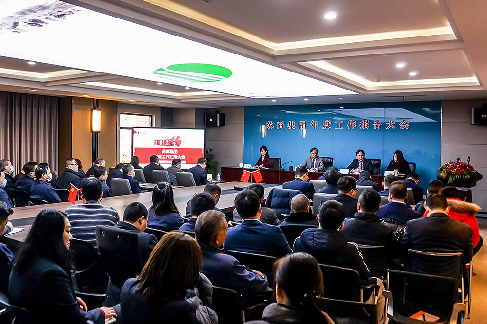 最后,蘇商集團董事長陳家俊先生作了題為《堅守底線保穩健 提質增效再出發》的工作報告,他在全面總結2021年工作時強調,盡管過去一年受到了新冠疫情不斷反復、原材料漲價、全國限產限電等因素的影響,但蘇商人臨危不亂,戮力同心,拼搏進取,集團仍然取得了喜人的成績。全年實現銷售收入超10億元,利潤超1億元,納稅超4000萬元。他在部署2022年工作時,分析了集團所面臨的形勢,明確了戰略方向,下達了總體目標,提出了總體工作要求。
