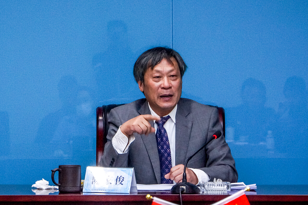 ↑蘇商集團董事長陳家俊先生在作2021年工作報告