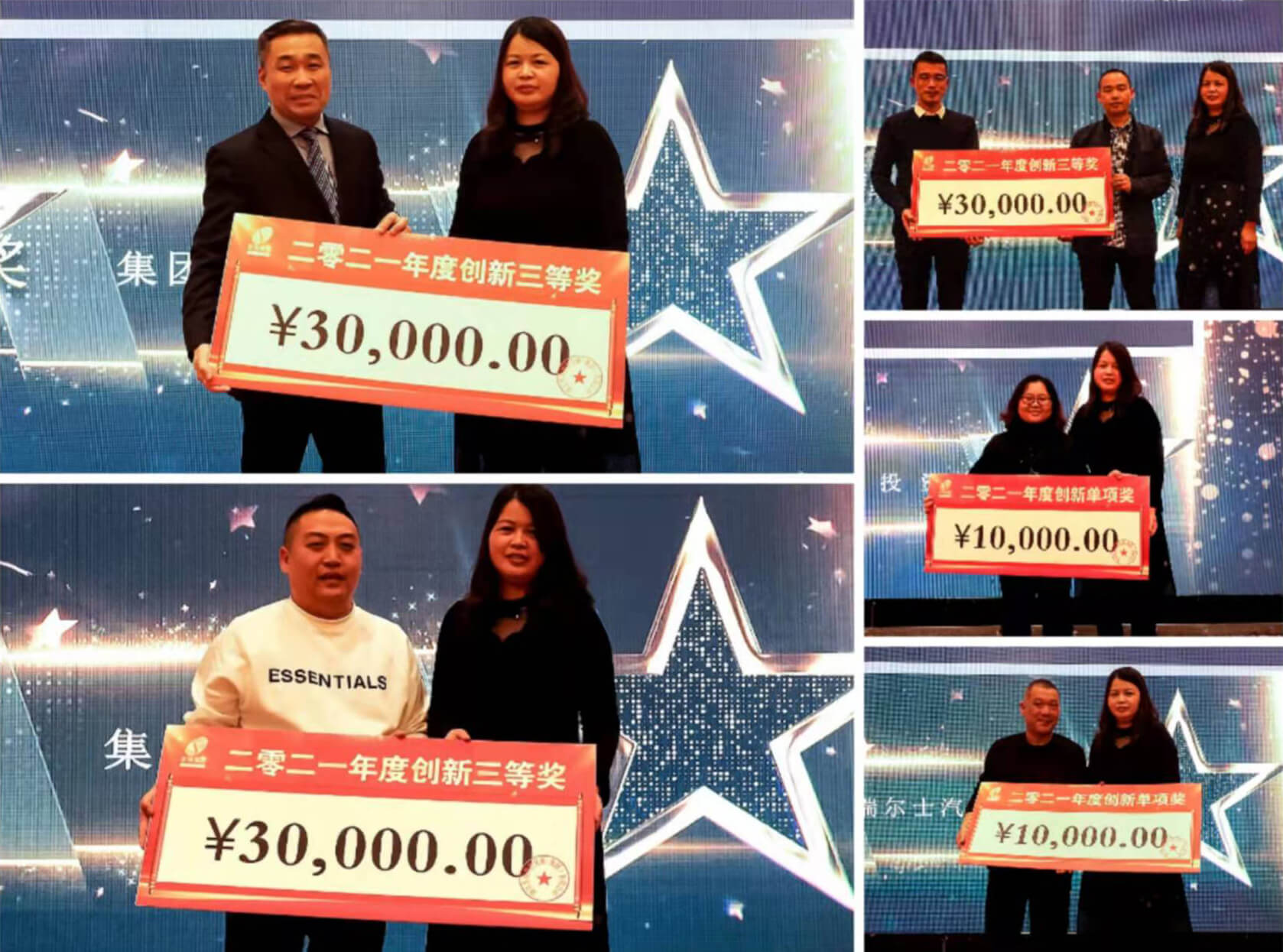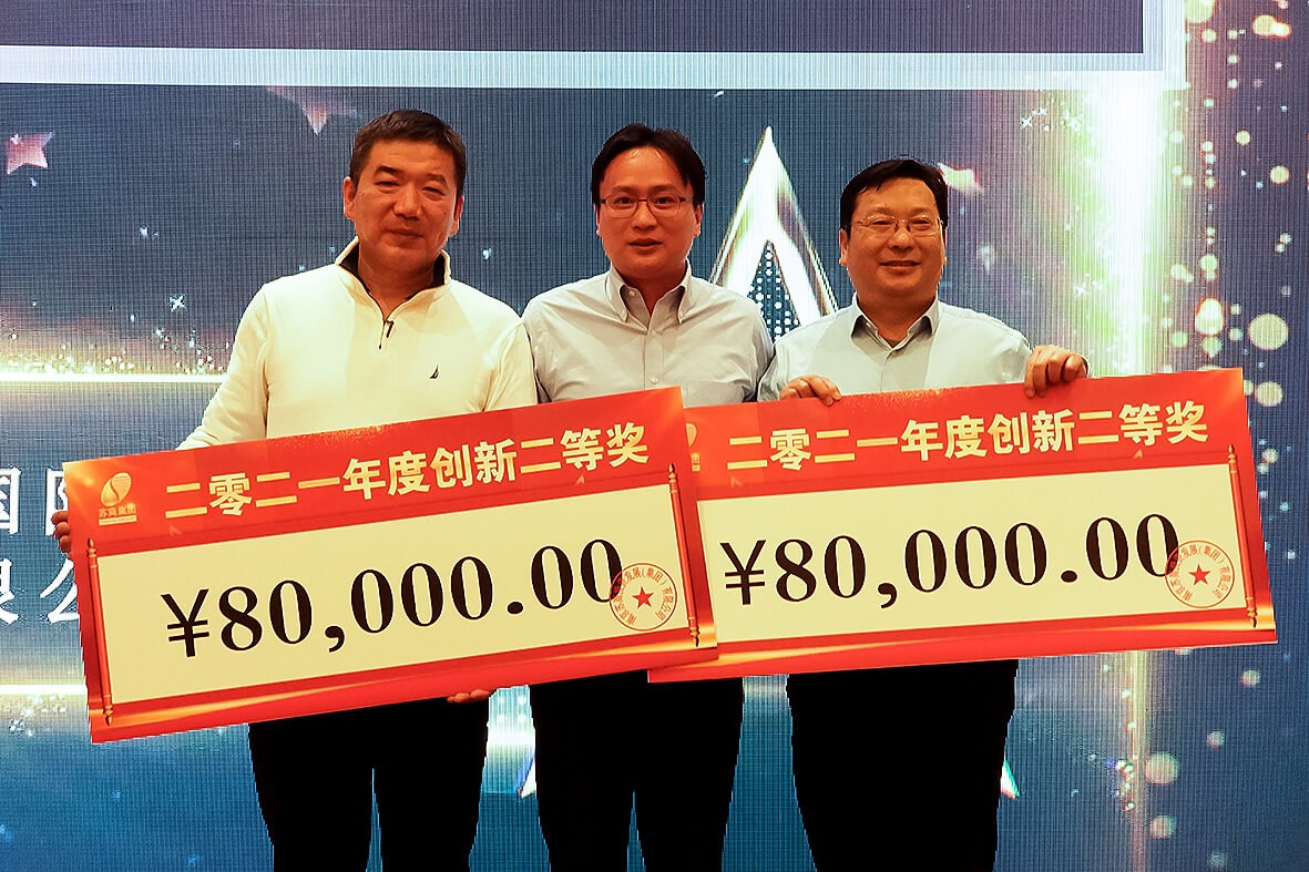 接著,集團副總經理陳寅先生和集團總經理助理楊華女士為獲得2021年度“創新二等獎”、“創新三等獎”以及“創新單項獎”的集體頒發獎金。